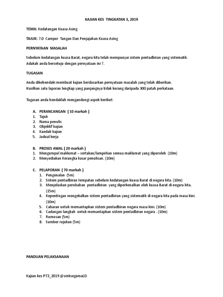 Tugasan kerja kursus sejarah pt3 2019 contoh jawapan bahan rujukan nice day. Rungus dan orang sungaiKegiatan di 30 OBJEKTIF KAJIAN Terdapat dua objektif kajian yang digunakan untuk menyiapkan kerja. Nota lengkap sejarah tingkatan 1 Izzat YP.